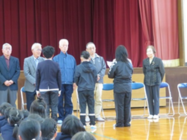 毎朝、児童の登校を見守ってくださっているボランティアの皆さんに、「今年もよろしくお願いします」という気持ちを届ける会を行いました。ボランティアの方々は、児童の命を守るために、ご自分の時間を削って活動してくださっています。しかし、一番大切なのは、児童が「自分の命を自分で守る」という決意を持つことです。そして、感謝の気持ちを伝える一番の方法は、「元気な挨拶」です。毎朝ボランティアの方々に会ったら、笑顔で挨拶をしましょう。